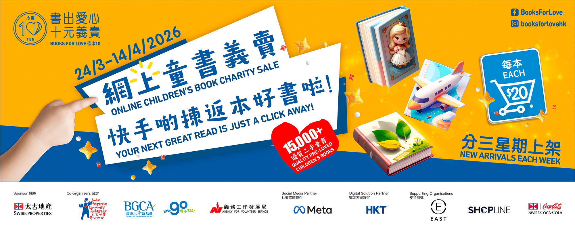 ‘BOOKS FOR LOVE @ $10’ promotes reading in a green and affordable way while supporting a meaningful cause. It collects pre-loved books from the public, sorts them by volunteers, and sells them for HK$10 each. Now in its 14th year, the program raised over HKD1.37 million last year, breaking records since its 2009 launch.